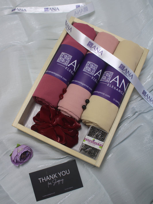 Premium Chiffon Hijab Gift Hamper - Set of 3 with Accessories and Greeting Card