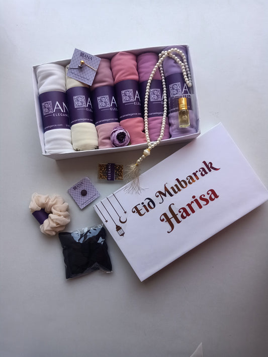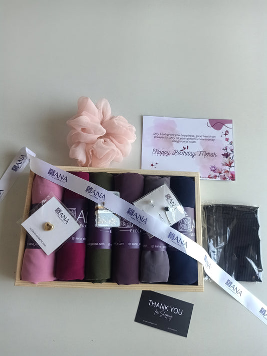 Premium Chiffon Hijab Gift Hamper - Set of 6 with Personalized Greeting Card