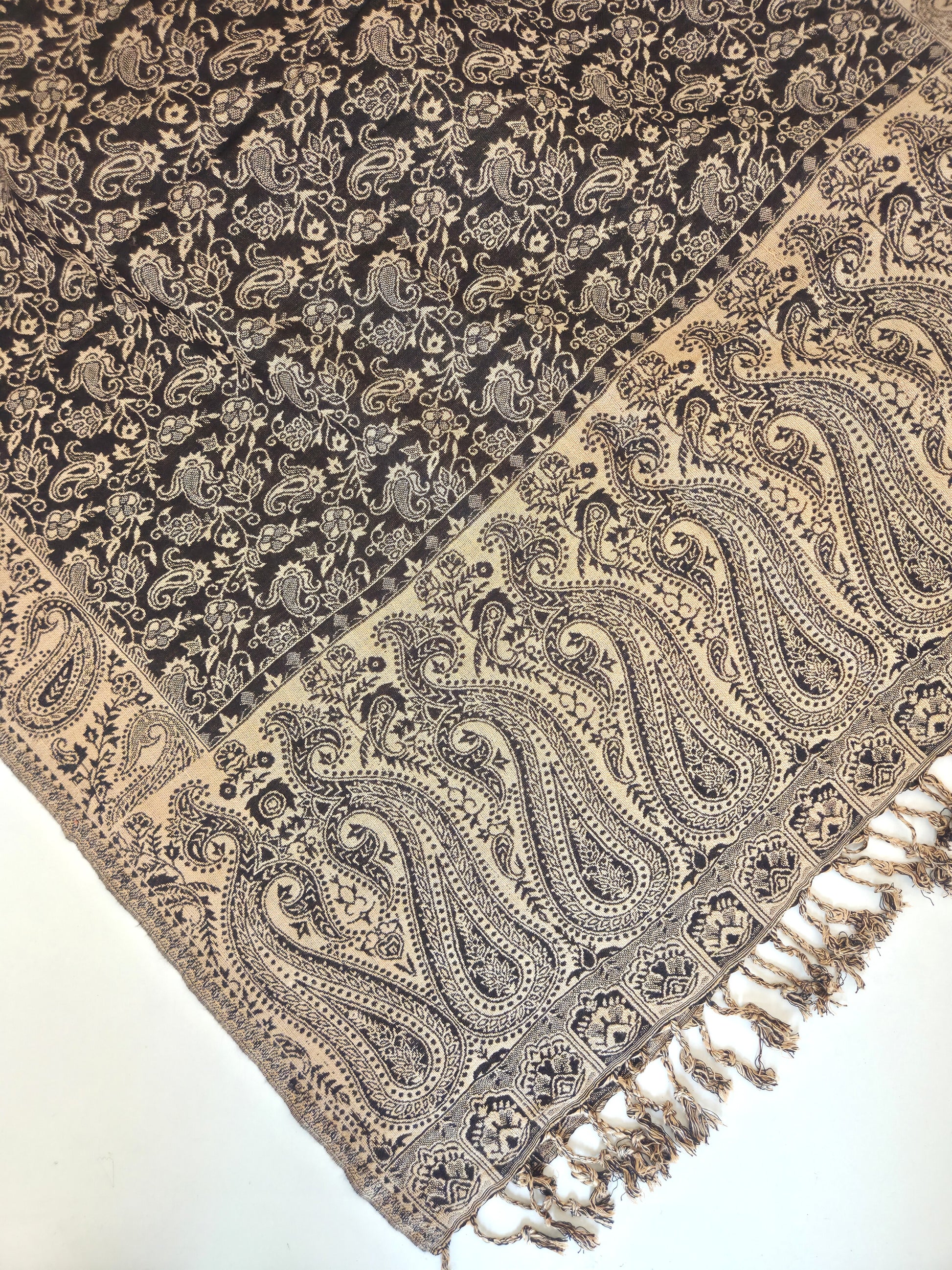 Crafted in the tradition of Kashmiri artistry, this pashmina hijab features an intricate paisley weave inspired by heritage motifs. Soft to the touch yet luxuriously warm, it drapes beautifully and adds an effortless elegance to every outfit.